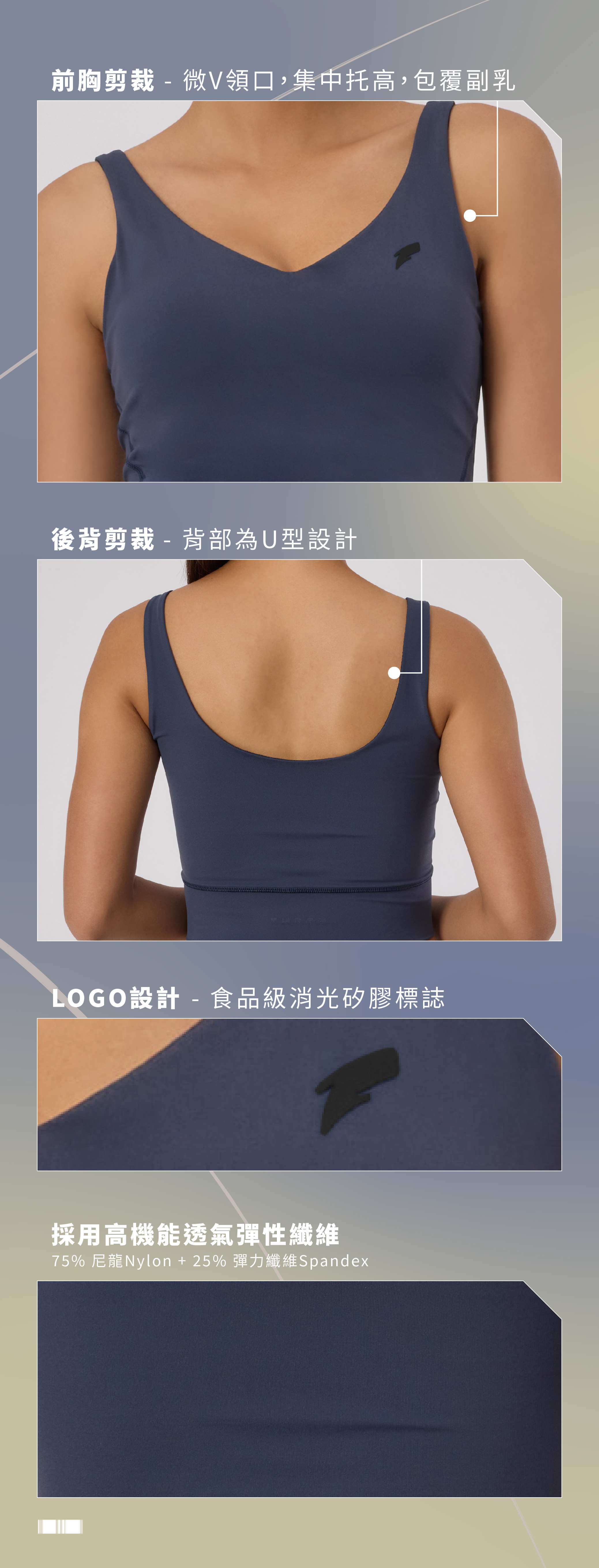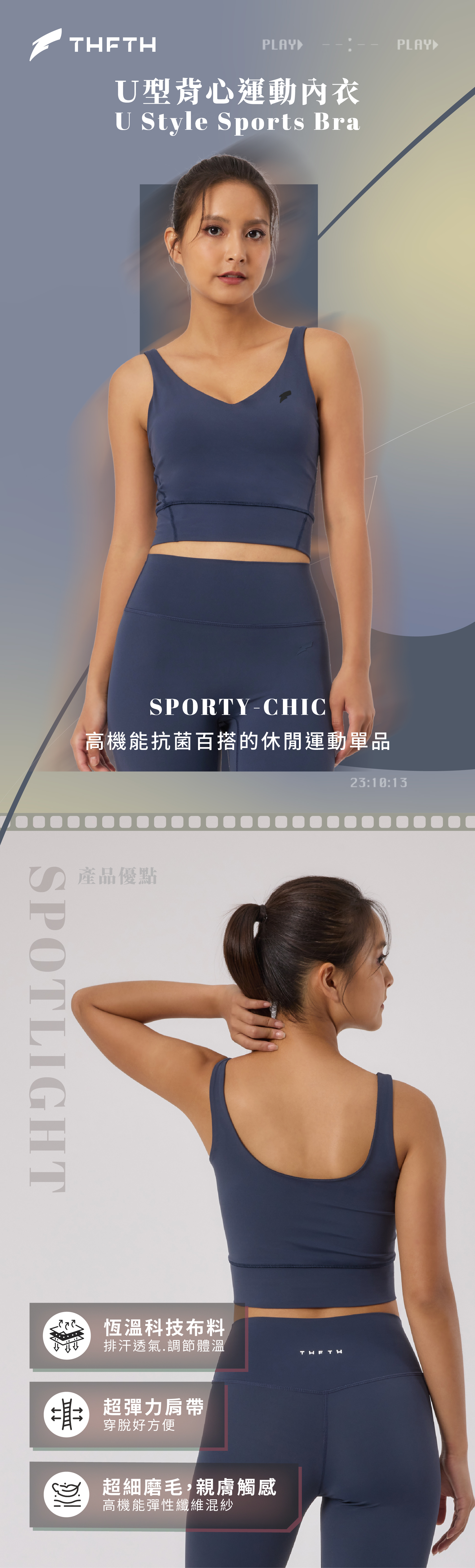 -舒適簡約U型背部設計,運動時輕鬆展露背部線條